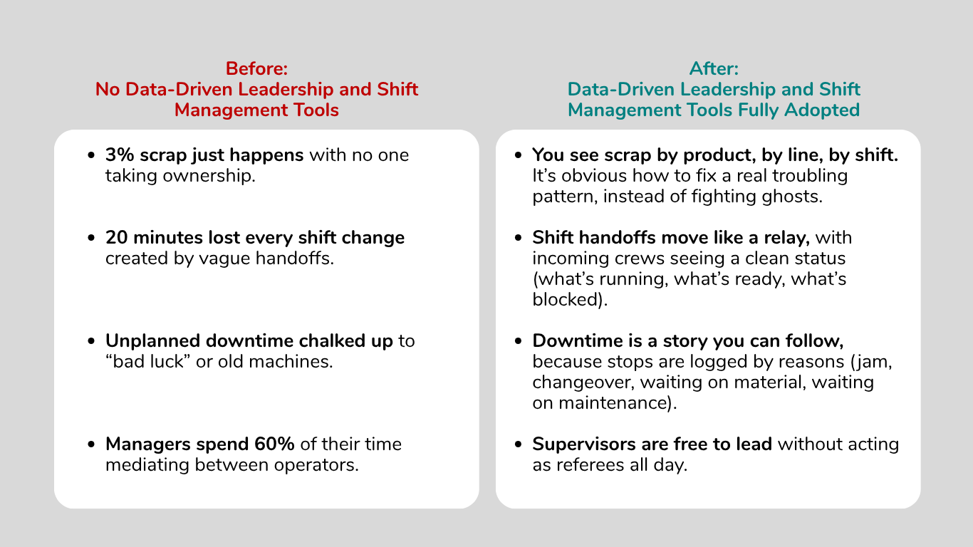 Many facilities run on assumptions. That uncertainty drains morale and money. The transformation championed by data-driven leadership and shift management tools changes the system inside out.